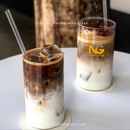 ly thủy tinh cafe ống mỏng in logo