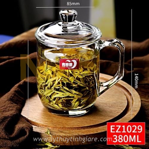 ly thủy tinh có quai cầm nắp đậy 380ml