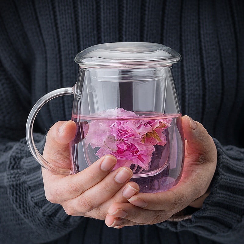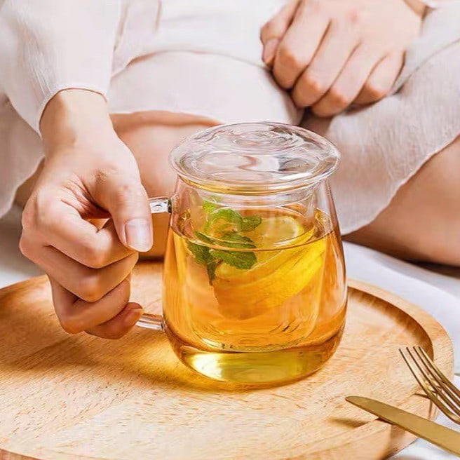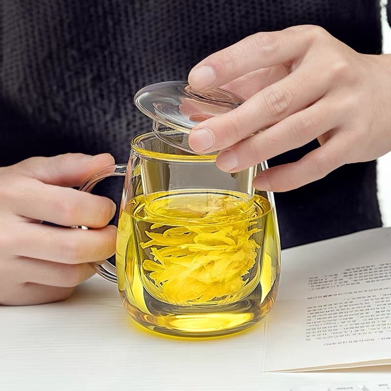 ly thủy tinh có quai lõi lọc thủy tinh pha trà 450ml
