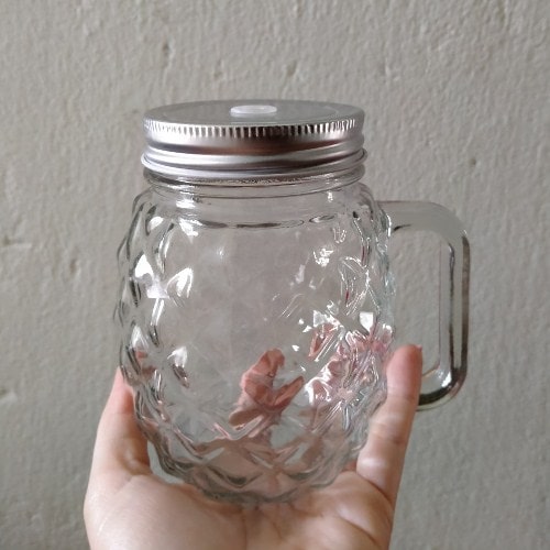 ly thủy tinh có nắp đậy làm bằng thủy tinh thiết kế dáng miệng tròn có quai và nắp đậy, hình ly trái thơm, ly quả dứa với một sự thiết kế tinh tế rất phù hợp sẽ mang đến cho bạn sự hài lòng khi thưởng thức những thức uống yêu thích của bạn