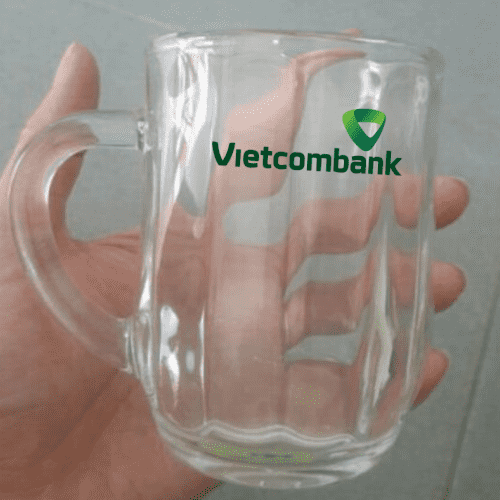 Ly thủy tinh kiểu uống bia lùn có quai này có thể in logo theo in lụa màu mực in rõ nét, không chầy xước, dùng tay cạo không tróc với các in logo nhãn hiệu slogan của các doanh nghiệp lên mặt ly thủy tinh, quà tặng doanh nghiệp in logo đóng gói bao bì sản phẩm theo nhu cầu của khách hàng, dùng làm quà tặng quảng cáo in logo giá rẻ