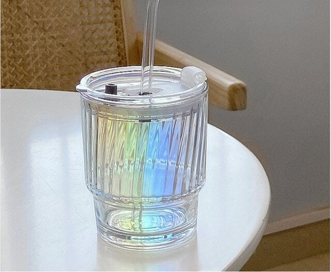 Ly thủy tinh giữ nhiệt màu cầu vòng ónh ánh