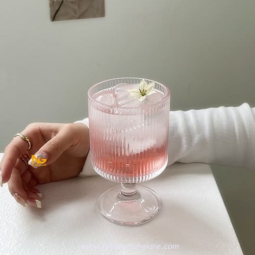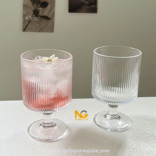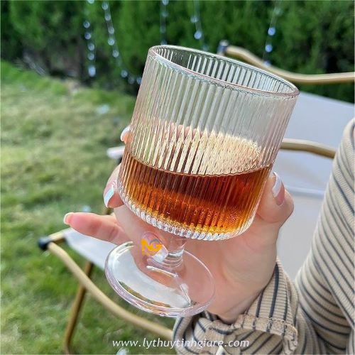 ly thủy tinh có chân họa tiết sọc khía kiểu vang