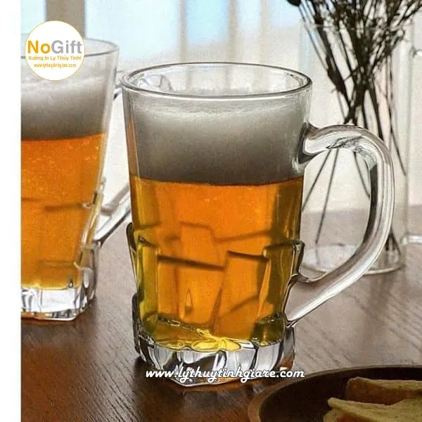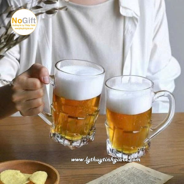 Một trong những xu hướng được nhiều quán bia và nhà hàng hiện nay lựa chọn là in logo lên ly thủy tinh uống bia có quai. Không chỉ mang lại sự đồng bộ chuyên nghiệp, mà còn giúp thương hiệu in sâu trong tâm trí khách hàng.