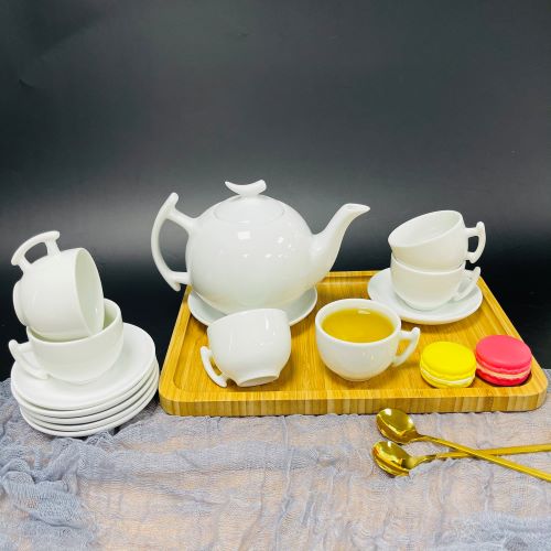 Bộ ấm trà cũng giống như diện mạo của Gia chủ, mang phong thái và tính tách riêng, thể hiện sự lịch thiệp, tôn trọng các vị khách của chủ nhân ngôi nhà. Tách trà có quai kèm theo dĩa với mặt men láng bóng, chịu sốc nhiệt cao, an toàn sức khỏe, lâu phai màu theo thời gian.