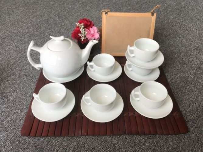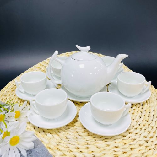 Bộ ấm trà sứ trắng trăng khuyết không bám nước chè, chất lượng đất nung đẹp hơn so với ấm trà Trung quốc, Thái bình,..