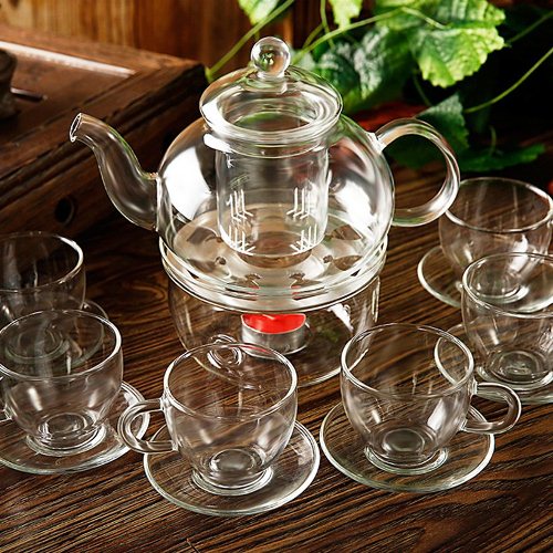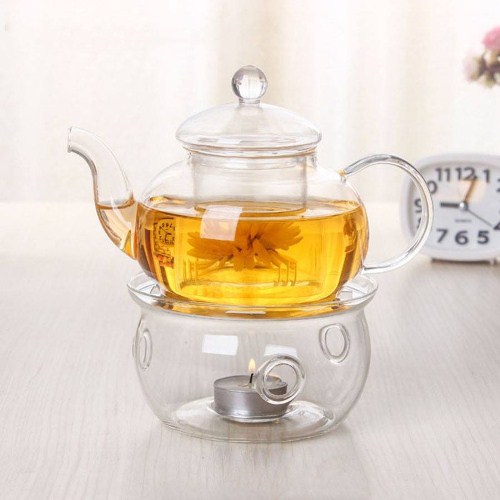 Bình trà thủy tinh trong suốt đựng nước trà trái cây, trà hoa quả, có màu nước rất đẹp khi nhìn vào bình, có thể tận hưởng được màu lá trà, hay trà hoa cúc hoa hồng bên trong bình, mà các bình khác không thể có được. Có cả bếp thủy tinh và nến bên trong để ủ nước trà cho nóng, giữ ấm trà.