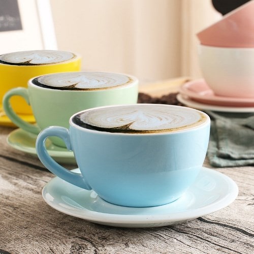 Ly latte màu xanh dương đẹp có quai dung tích 220ml được làm từ gốm sứ việt nam với chất liệu gốm sứ loại đẹp, tách sứ dung tích lớn mà gọn dễ mang xách uống cafe trong văn phòng. Cung cấp ly sứ in logo, slogan, tem nhãn hiệu lên ly để làm quà tặng,chương trình khuyến mãi, tổ chức hội nghị sự kiện