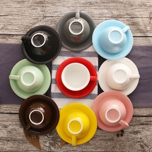 Tách sứ latte đẹp có quai đủ màu sắc, màu đỏ, màu cam, màu xanh da trời, màu xanh lá, màu vàng, màu xanh ngọc bích, có dung tích 220ml được làm từ gốm sứ việt nam với chất liệu gốm sứ loại đẹp, tách sứ dung tích lớn mà gọn dễ mang xách uống cafe trong văn phòng. Cung cấp ly sứ in logo, slogan, tem nhãn hiệu lên ly để làm quà tặng,chương trình khuyến mãi, tổ chức hội nghị sự kiện