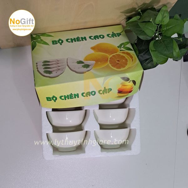 Chén sứ nhỏ in logo là một lựa chọn tuyệt vời cho các doanh nghiệp muốn tạo ấn tượng mạnh mẽ và độc đáo trong chiến dịch quảng cáo khuyến mãi. Bộ chén gồm 6 cái được đựng trong hộp xốp chống xốc, giúp bảo quản sản phẩm an toàn và tiện lợi cho việc vận chuyển. Đây không chỉ là một sản phẩm quà tặng sang trọng mà còn là cách hiệu quả để thúc đẩy thương hiệu của bạn.