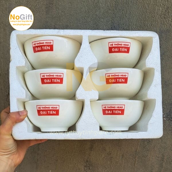 Bộ 6 chén sứ nhỏ in logo hệ thống Head Đại Tiến